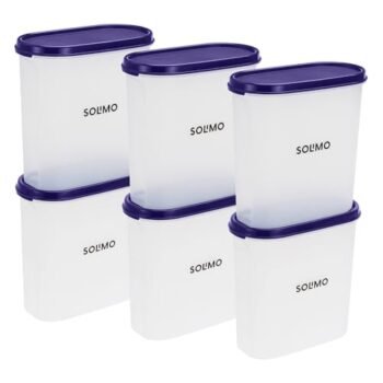 Amazon Brand – Solimo Modular Plastic Storage Containers with Lid | Airtight | BPA-Free | Set of 6 | 1.8 L (Blue) is available on Amazon.