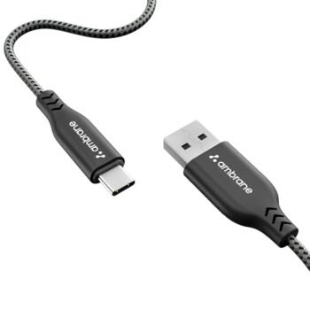 Ambrane Type C Cable 3A Fast Charging 1M Braided Cable for Iphone Smartphones, Tablets, Laptops & other Type C devices, 480Mbps Data Sync, Quick Charge 3.0 (RCT 10, Black) is available on Amazon.