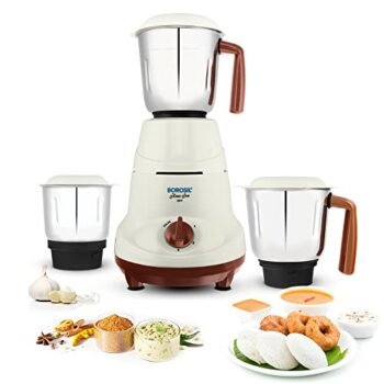 Borosil Home Star Mixer Grinder, For Wet/Dry Mixing & Grinding, 500 Watts, 3 Stainless Steel Jars(1.2 L Blending Jar, 800 ml Dry/Wet Grinder, 400 ml Chutney Jar), Mixie For Kitchen is available on Amazon.