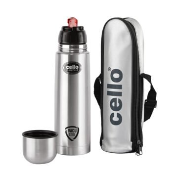 Cello Flipstyle Thermosteel Flask with Thermal Jacket 1000ml, Silver | 24 Hours Hot & Cold Water Bottle | Flask for Tea Coffee | Rust & Leak Proof | Ideal for Office, Gym, Home, Kitchen, Travel Bottle is available on Amazon.