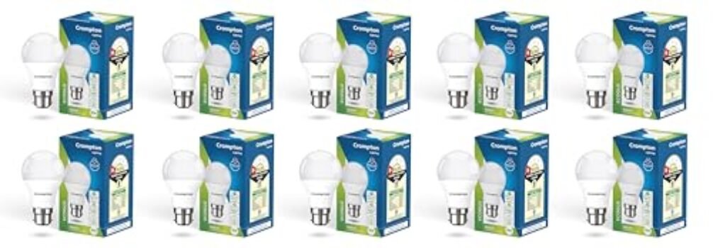 Crompton Param LED Bulb | 9W | Cool Day Light | B22 Base | 180 Degree Coverage | 4kV Surge Protection | 440V High Voltage Protection | Pack of 10 is available on Amazon.