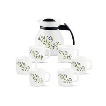 La Opala Novo Collection Opal Glass Crockery | Coffee Set 7 pcs | Coffee Mug with Coffee Pot, Lush Greens | for Tea & Coffee | Microwave Safe | 100% Vegetarian | Extra Strong | Light & White is available on Amazon.