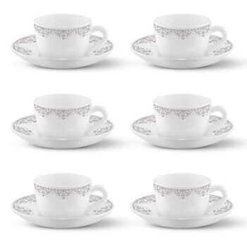 Larah by BOROSIL Lark Opalware Cup and Saucer Set of 12 pcs | Tea/Coffee Cups 145 ml | Microwave & Dishwasher Safe | Bone-Ash Free | Crockery Set Ideal for Daily Use & Gifting, White is available on Amazon.