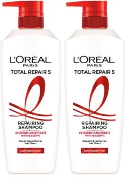 L’Oreal Paris Total Repair 5 Shampoo, For Repairing 5 Signs Of Damaged Hair, With Keratin Xs | 800Ml (Pack of 2) is available on Amazon.