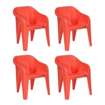 Nilkamal CHREEEZYGO Plastic Chair with Arm (Peach) – Set of 4 is available on Amazon.