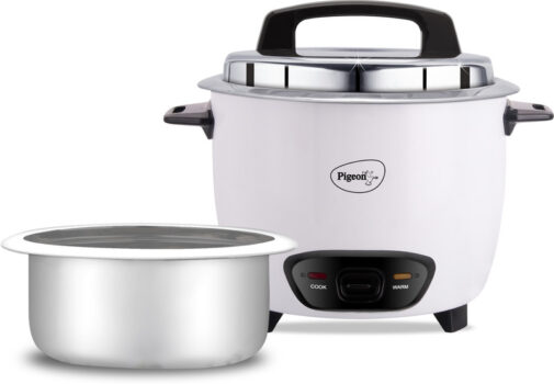 Pigeon joy (with ss lid) – 1.8 l (single pot) Electric Rice Cooker with Steaming Feature(1.8 L, White) is available on flipkart.