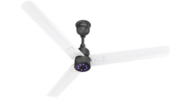 Polycab Wizzy Plus LED BLDC Ceiling Fan 1200mm|BEE 5 Star Rated, Higher Air Delivery|LED Indicator,Reverse,Boost,Sleep and Breeze Mode,Free Installation |3 Years Warranty (White Black) is available on Amazon.