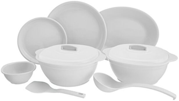 Signoraware Plastic Round Dinner Set (White) – 31 Pieces is available on Amazon.