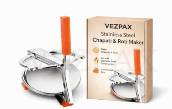 VEZPAX Stainless Steel Puri Maker New Press Machine for Home and Kitchen for Making Papad khakhra poori roti and Many More Manual Hand Press with Handle is available on Amazon.